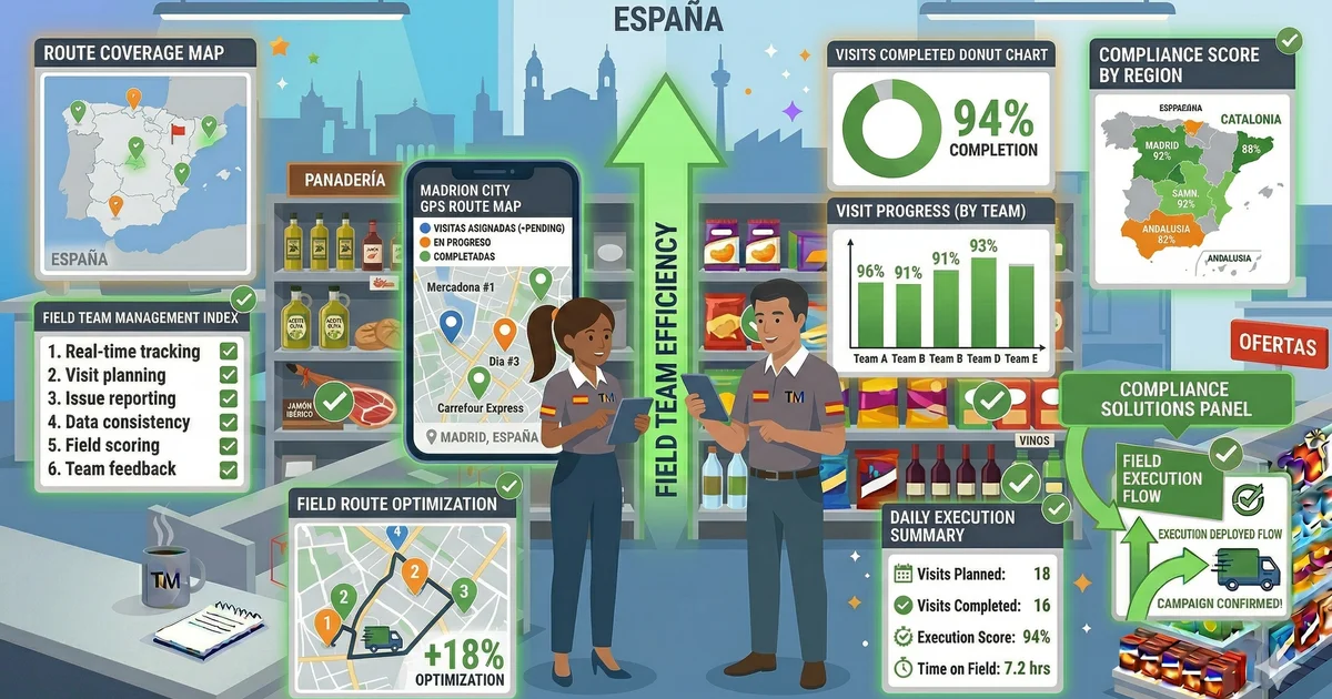 Un consejo práctico para las agencias que entran al mercado español: establezca relaciones con los responsables de tienda desde el principio. A diferencia de los mercados latinoamericanos, donde el promotor suele tener acceso directo a las estanterías, muchos minoristas españoles exigen autorización formal para las actividades dentro de la tienda. El checklist digital del promotor debería incluir un campo de confirmación de la aprobación del responsable de tienda, y la foto geolocalizada sirve como evidencia de que la visita fue legítima y autorizada.